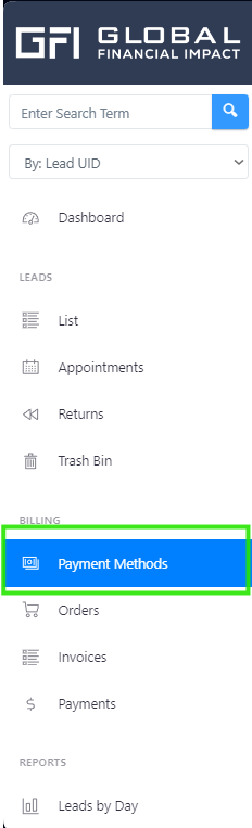 Add a Payment Method to easily pay for Orders and Leads: