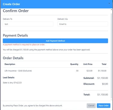 You can purchase leads through our online portal. Simply log in to your account, select your desired lead type and quantity, and complete the purchase process. Special promotions and bulk pricing are available periodically. Click the link below to learn how to use the lead portal: